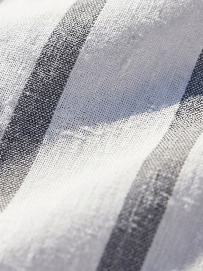 This dress features a relaxed silhouette with a soft tie neckline and vertical stripe pattern. The fabric is light and fluid, allowing it to move easily with the body throughout the day. It suits warm weather and everyday outings with a simple, easy feel.
